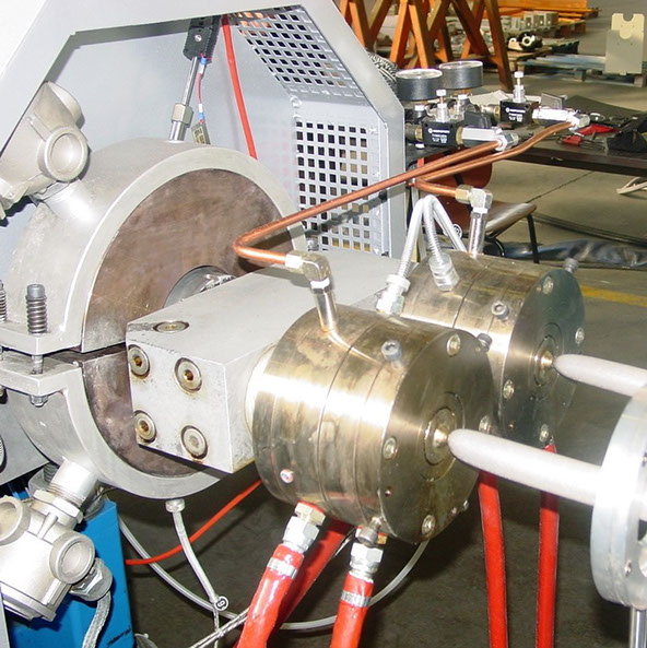 Las líneas de extrusión para tubos expandidos pueden constar de extrusoras monohusillo (generalmente para pequeños tubos) o de extrusoras bihusillo corrodantes con diámetro entre 90-180 mm o de sistemas tandem.