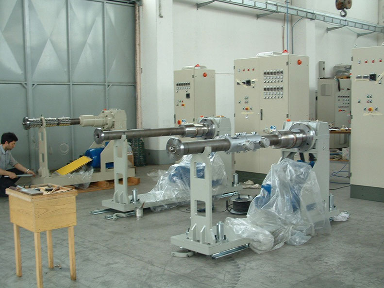 Las líneas de extrusión pueden tener una segunda extrusora que aplica una capa rígida protectiva en PE sobre la capa aislante XPE para asegurar más duración en el tiempo. Además, cuando el diámetro del tubo exigido es de pequeñas dimensiones, es posible extruir directamente la capa aislante XPE sobre el tubo de cobre. El uso de más cabezales de extrusión aumenta mucho la producción horaria de la línea de extrusión.